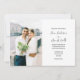 Simple faire-part de mariage photo horizontale classique. Avant : photo et texte côte à côte avec script et texte brut. Le dos est gris. Remplacez la photo existante par la vôtre. Pour modifier la disposition, cliquez sur Personnaliser, Modifier à l'aide de l'outil de conception, puis Modifier le texte. Utilisez la commande Cntl pour sélectionner et déplacer plusieurs sections à la fois.