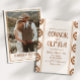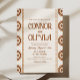 Un faire-part de mariage occidental moderne avec des tons neutres chauds et des motifs audacieux inspirés du sud-ouest. Parfait pour les mariages à la ferme, dans le désert ou en plein air avec une atmosphère western semi-formelle. Disponible sous forme de cartons d'invitation imprimés professionnellement ou de fichier numérique pratique pour un partage facile.