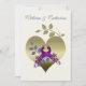 Faire-part de mariage élégant fait en pourpre et or, montrant de beaux graphiques de deux paons pourpres réglés à l'intérieur d'un coeur d'or, sur l'avant de l'invitation. Le texte est entièrement personnalisable pour adapter à vos besoins, couleur de changement, le style de police, tailles, même suppression de ajoutent des lignes.