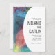Ce faire-part de mariage moderne présente des peintures colorées à l'aquarelle et un arc en ciel propre. Parfait pour les thèmes mariages de la fierté LBGT. Merci pour les designs de support par Cody Alice Moore!