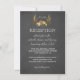 Simple et élégant ! Un design Rustique Bohème pour la décoration, avec des bois de cerf en dorure embellie de guirlandes lumineuses, de fleurs (roses) sur fond tableau noir. Utilisez l'outil Personnaliser pour ajouter vos informations. Pour plus de papeterie de mariage, veuillez visiter la collection Rustique Bois de Cerf Embellis Toutes Saisons.