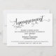 La distinction de cette suite est due à la police de caractères cursive élaborée utilisée pour les phrases d'accentuation. Dans le cas où vous auriez besoin d'informer vos invités que votre mariage a été reporté, cette carte offre une option élégante. Dans ce modèle, la police de calligraphie a été utilisée pour créer un graphique représentant le mot "Annonce". Utilisez les champs du modèle pour ajouter vos informations personnelles et personnaliser ce design. La couleur de fond peut être modifiée selon vos préférences. N'hésitez pas à nous contacter pour toute demande spéciale ou pour une aide à la personnalisation. // 98 //