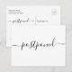 Carte postale de faire-part de mariage reporté moderne noir et blanc. Si la date de votre mariage a dû être modifiée, c'est un excellent moyen de prévenir vos invités.