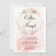 Belle couronne florale avec fond rose blush et roses blanches et roses blush pour votre faire-part de mariage. Facile à personnaliser. Party Parti PH © Plus de modèles disponibles dans notre boutique.