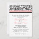 Cette élégante invitation traditionnelle est composée de motifs de design noir à motifs damassés à fleurs et d'une touche de rose pâle et blush avec un bar qui court sur le dessus à l'avant. Cette belle et élégante invitation au mariage est idéale pour les mariages aux couleurs roses et noires, ou pour les mariages de printemps ou d'été. Cette invitation moderne peut aussi être utilisée pour des invitations de douche wedding shower ou nuptiale, ou même une fête de fiançailles ou de voeu de renouvellement en changeant le texte à ce que vous voulez.