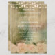 Un élégant faire-part de mariage rustique avec arrière - plan en bois, des roses roses douces et une série de lumières. Ce faire-part de mariage fait partie d'un ensemble complet,