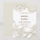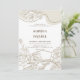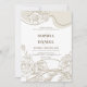 Élégantes roses blanches et feuilles encadrées par des lignes courbes beiges et brunes