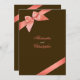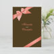 Ruban rouge corail sur fond chocolat design. 5" x 7" Élégant, entièrement personnalisable à utiliser pour les invitations de mariage, save-the-date, annonce, rsvp, carte pour mariages, fêtes, douche de mariée, fiançailles et toute autre occasion spéciale.