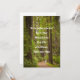 Faire-part de mariage rustique informel en forêt - Texte simple et informel en blanc sur une photo d'un couple de mariés descendant un chemin à travers une forêt d'arbres verts luxuriants de hautes tailles.