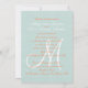 Faire-part de mariage rustique avec la conception de monogramme - vert, blanc et corail en bon état par le © d'Elke Clarke. Customisez avec votre l'initiale de monogramme et prénoms de jeunes mariés sur l'avant de la carte. Ajoutez toute votre information de mariage sur le dos de la carte utilisant les invites faciles à utiliser du menu de Zazzle. Venez avec l'enveloppe blanche vide. Une conception simple souple simple avec qui et texte de corail sur un arrière - plan de toile vert en bon état (effet imprimé de photo).