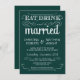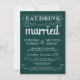 Mangez, buvez, et soyez marié -- Invitations rustiques de mariage campagnard de style vintage -- Les rouleaux tourbillonnants et bouclés et la typographie de vieux-mode sur le pin vert de forêt verdissent l'arrière - plan. Ajoutez vos noms et information de épouser dans ce modèle facile à utiliser. Élégant mais amusement et lunatique, l'écriture de manuscrit de style de tableau peut être modifiée pour votre rétro thème formel ou semi-formel de mariage. Le style moderne décontracté est parfait pour des mariages contemporains à la mode avec un contact d'amusement de charme sophistiqué pour les jeunes mariés traditionnels. Veuillez nous contacter pour l'aide avec la personnalisation si vous avez besoin de la pièce supplémentaire pour vos détails de mariage. D'autres tailles et styles de tableau disponibles.
