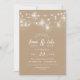 Invitations de mariage personnalisées abordables avec un modèle facile à utiliser pour la personnalisation. Ce design rustique chic présente des brins de lumières à cordes brillantes et des jarres de maçon sur un arrière - plan en papier imitation kraft. Personnalisez l'invitation avec les détails de votre mariage ou customisez le texte à utiliser pour tout événement. Utilisez les outils de conception pour choisir n'importe quelle couleur arrière - plan, ajouter des photos et customiser les polices de texte et les couleurs pour créer un design unique pour votre mariage.
