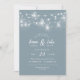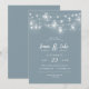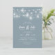 Invitations de mariage personnalisées abordables avec un modèle facile à utiliser pour la personnalisation. Ce design rustique chic présente des brins de lumières à cordes brillantes et des jarres de maçon sur un arrière - plan bleu poussiéreux. Personnalisez l'invitation avec les détails de votre mariage ou customisez le texte à utiliser pour tout événement. Utilisez les outils de conception pour choisir n'importe quelle couleur arrière - plan, ajouter des photos et customiser les polices de texte et les couleurs pour créer un design unique pour votre mariage.