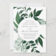 Notre faire-part de mariage Wild Azure entoure vos détails de jour de mariage avec une bordure circulaire de feuillage d'aquarelle vibrante dans les tons vinicoles de vert forêt. Un choix moderne mais organique pour les mariages d'hiver ou de printemps avec des éléments botaniques peints de manière complexe.