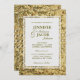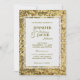 Ce faire-part de mariage à l'allure romantique en paillettes d'or semble charmant et élégant face à l'arrière - plan blanc.