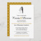 Faire-part de mariage comportant des silhouettes de jeunes mariés avec des accents d'or. Choisissez votre arrière - plan et couleurs d'accent.