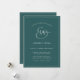 Simple Faire-part de mariage Monogramme vert émeraude. Impressionnez vos invités mariages avec ce faire-part de mariage vert foncé branché avec une belle écriture blanche, avec les initiales de la mariée et du marié sur un arrière - plan vert émeraude. Cette Invitation a un superbe design vert de forêt, avec des ambiances modernes et minimes, parfait pour votre mariage simple, tendance, minimaliste. La disposition minimale et moderne attire l'attention sur le script initial, en contraste avec l'arrière - plan chasseur-vert. Cette invitation donnera le ton d'un beau cadre mariage, entouré de fleurs neutres ou vert émeraude, et d'un décor mariage vert foncé assorti. Un complément parfait à toute célébration moderne et sobre. Le Collectif du dimanche © par Rachel Hannah Gee