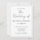 Classique. Minimal. Sophistiqué. Ce Faire-part de mariage Simple Script noir et blanc est parfait pour les couples qui apprécient le design propre et le style intemporel. Avec une élégante typographie de script sur un arrière - plan blanc immaculé aux accents noirs, cette invitation donne le ton d'une célébration moderne mais romantique. Entièrement personnalisable avec vos détails mariages, il est idéal pour les évènements en cravate noire, les thèmes minimalistes, ou tout couple qui aime l'élégance sobre.