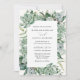 Belle faire-part de mariage succulente et eucalyptus. Customisez votre libellé. Cliquez sur "Customiser plus loin" pour modifier le style, la taille et la couleur de la police si vous le souhaitez.
