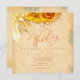 Tournesols chauds et gazon de pampas éclairé sur arrière - plan texturé. Aménagement en angle de l'aquarelle et du motif de tournesol rose sur le visage et une texture rustique en stuc en or ocre doux sur l'envers. Couleurs neutres modernes et tournesols dorés avec un libellé décontracté et le thème naturel.Taille pour une carte carré plat.
