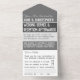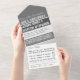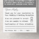 Design de couleurs gris argenté en bandes. Carte tout-en-un de faire-part de mariage. Jour de mariage et réception de mariage. Comprend la ligne de préférence de repas.
