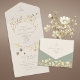 Cette faire-part de mariage tout-en-un offre un confort élégant avec un design pliable, carte RSVP et adresse de retour en une seule pièce. Dans un décor vert sage et doux, les délicats fleurs sauvages beiges et dorés ajoutent un charme botanique rustique, idéal pour les boho, les jardins ou les mariages de automne.