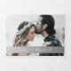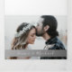 Faire-part de mariage simple, élégant, à l'écriture calligraphique moderne argent-gris noir et blanc, avec photo du couple sur le devant.