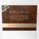Élégante, moderne, invitation de mariage triptyque en bois rustique avec feuillage aquarelle, cœur en corde dorée simple et photo personnalisée du couple au dos.