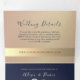 Faire-part de mariage triptyque simple, élégant et minimaliste en or rose et bleu marine, avec une belle corde en feuille d'or et photo des mariés.