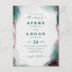 Aquarelle Ethérée Abstraite Emerald Green Wedding Invitations. Cette invitation de mariage moderne est magnifiquement peinte à la main avec des couleurs riches qui sont parfaites pour l'hiver ou l'automne. Montré dans la palette de couleurs Emerald Mariage de : vert émeraude foncé, violet mauve, prune foncée Sangria, or Rose et vert ciel. Avec des détails de feuille de parties scintillant métal d'or, et une police de script de signature magnifique avec des queues, la collection de mariage d'aquarelle éthérée est sûr de rendre votre mariage mémorable et beau! Pour en savoir plus, recherchez les collections mariages 2021 de Chic Paperie pour des designs plus tendance et palettes de couleurs mariages pour cette année.