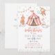 Faire-part de naissance de bébé sans genre avec des animaux de cirque adorables, facile à éditer avec la date, l'heure et les détails de la liste de naissance au verso.