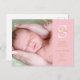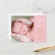 Carte de remerciement de naissance de bébé fille avec monogramme et photo. La carte sert à présenter votre nouveau-né. Le recto comprend la photo de votre bébé et un panneau latéral rose délicat avec un monogramme blanc personnalisé et un texte doré pour les détails de la naissance. Le verso comporte un texte supplémentaire qui peut être personnalisé avec votre message de remerciement. Conçu par Thisisnotme