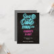 Cette carte de faire-part de naissance vibrante présente un thème néon accrocheur avec des couleurs bleu et rose vives sur un fond de mur de briques noir élégant. La carte utilise des polices grasses et ludiques pour créer une atmosphère amusante et animée, parfaite pour célébrer un anniversaire spécial. Le design moderne et le style énergique garantissent que cette fête sera inoubliable.