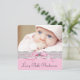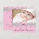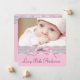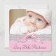 De mignons faire-part de naissance photo bébé fille en dentelle rose, ruban, perles et nœud. Ce joli faire-part de naissance rose et noir est facilement personnalisable avec votre photo et vos informations en ajoutant votre photo, les détails de l'événement, le style de police, la taille et la couleur de la police, ainsi que le texte.