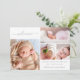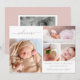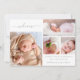 Annoncez l'arrivée de votre bébé fille avec ce faire-part de naissance moderne recto-verso. Le recto présente un collage de quatre photos de vos photos de bébé préférées avec une typographie gris clair simple. Personnalisez avec le nom de votre bébé, la date de naissance, les statistiques de naissance et les noms des parents.