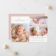 Le verso est rose pâle avec des pois blancs et comprend un espace pour une photo de famille et une plaque signalétique de famille mignonne
