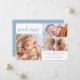 Le verso est bleu avec des pois blancs et comprend un espace pour une photo de famille et une plaque signalétique de famille mignonne
