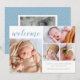 Annoncez l'arrivée de votre bébé garçon avec ce faire-part de naissance moderne recto-verso. Le recto présente un collage de quatre photos de vos photos de bébé préférées avec une typographie gris clair simple. Personnalisez avec le nom de votre bébé, la date de naissance, les statistiques de naissance et les noms des parents.