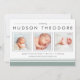 Annoncez l'arrivée de votre bébé sucré avec nos annonces de naissance de style collage moderne et neutre, avec trois de vos photos de nouveau-nés préférées au format carré, accentuées avec des polices de caractères modernes et des éléments rayés en noir doux et vert mousse clair. Personnalisez avec le nom de votre bébé, les statistiques de naissance et le message de famille en utilisant les champs fournis.