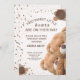 Faire-part de baby shower pour jumeaux avec "Deux petits ours adorables sont en route" dans des couleurs crème et marron pastel présentées dans un style bohème et une écriture moderne.