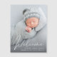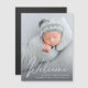 Un aimant de faire-part de naissance keepsaké avec la photo de votre nouveau-né superposée avec "Welcome" dans un script blanc élégant. Ajoutez le nom, la date de naissance et les statistiques de naissance de votre bébé.