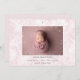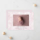Faire-part de naissance moderne, simple et élégant en rose pour une petite fille née en hiver avec des flocons de neige sur les bords de la photo. Icy, rose, arrière - plan en marbre avec des flocons de neige blancs. Personnalisez facilement cette carte faire-part de naissance mignonne avec votre propre photo et tous les détails.