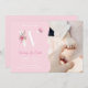 Faire-part bébé rose mignon avec lettre W initiale en blanc et rose. La première est décorée de fleurs dessinées à la main et de papillon. Cette faire-part de naissance simple et élégante est parfaite pour annoncer l'arrivée de votre petite princesse.