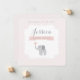 carte faire-part de naissance pour une petite fille avec un joli éléphant et un coeur, lettrage à la main et un motif chevron.