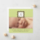 Cette faire-part de naissance moderne présente l'intérieur initial du bébé à l'intérieur d'un cadre avec une pièce sous la photo pour les détails de naissance. Placez-vous sur un arrière - plan vert.