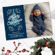 Répandez la fête de Noël et annoncez votre nouvelle arrivée avec notre Carte de Faire-part de naissance "Notre Joyeux Petit Noël"! Cette charmante carte présente une charmante image d'arbre de Noël avec des flocons de neige, des poinsettias, des botaniques festifs et un rouge-gorge. Sur cette image festive se trouve le texte décoratif "Notre Joyeux Petit Noël", qui donne le ton parfait pour la première saison de vacances de votre bébé. L'élégante palette de couleurs bleues vient compléter le design saisonnier. Personnalisez la carte avec une photo verticale de votre trésor nouveau-né et ajoutez leur nom, date de naissance et poids sous le texte "Introducteur". Au dos, vous pouvez écrire un message sincère à vos proches. Le faire-part bébé parfait pour la saison des Fêtes, idéal pour une fille, un garçon ou une carte de genre neutre.
