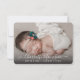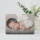 Carte de faire-part de naissance pour bébé nouveau-né. Présentez votre nouveau-né à votre famille et à vos amis avec des images de la première séance photo de votre bébé. Ajoutez facilement le nom du bébé et les statistiques de naissance sur le devant. Au dos se trouve une deuxième photo, en noir et blanc, et un court message de la nouvelle maman et papa. Le modèle a un emplacement pour deux photos, une sur le dos et une sur le devant. Modifiez facilement le nom et les détails de naissance avec la fonction "Personnalisez ce modèle" de Zazzle. Les photos ne sont utilisées qu'à des fins de démonstration et doivent être remplacées avant l'achat. Si l'une de vos photos nécessite un ajustement de leur position, allez dans l'éditeur en cliquant sur "Personnaliser ce modèle" et les images peuvent être ajustées à l'aide de l'outil de culture, puis déplacez l'image à la bonne position dans le champ de culture. Carte Faire-part de naissance photo Baby 2.