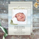 Une carte bébé sophistiquée avec une photo personnelle de votre nouveau-né, élégamment bordée d'un motif rayé gris clair et bleu pastel, complétée par un script artistique et des accents floraux. Vous pouvez également remplacer le dos de la carte par une photo, si vous le souhaitez.