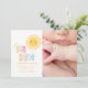 Voici notre rayon de soleil faire-part de naissance photo moderne. Design d'illustration en arc-en-ciel jaune typographie. Partie d'une collection.