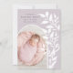 Faire-part de naissance chic et moderne avec une seule photo verticale/orientée en format portrait dans une mise en page en arc, avec des vignes grimpantes de feuilles botaniques blanches le long du côté droit. Personnalisez avec le nom de votre bébé, sa date de naissance et ses statistiques, et ajoutez un message personnel au verso, ainsi qu'une photo supplémentaire.